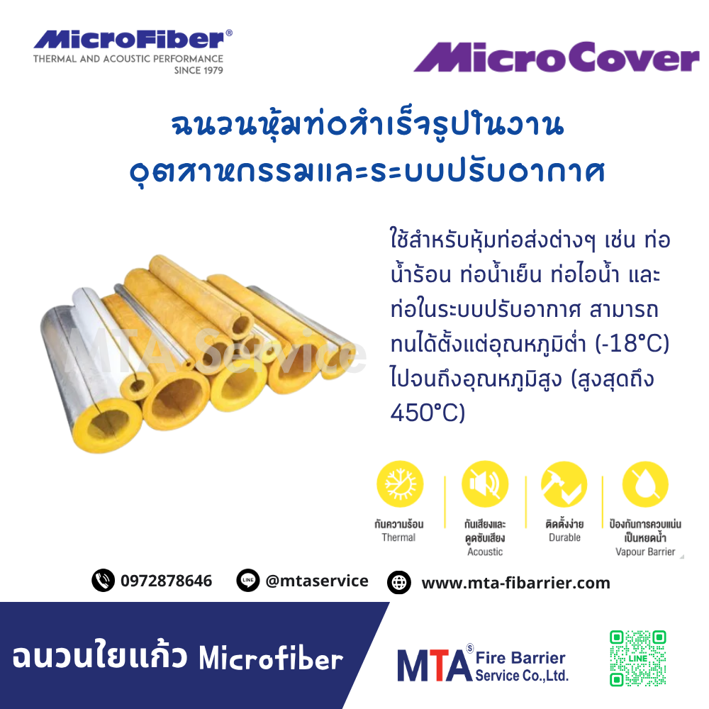 ผลิตภัณฑ์ MicroCover ผลิตจากเส้นใยแก้วคุณภาพสูงจาก Microfiber นำมาผ่านกระบวนการอัดขึ้นรูปให้เป็นท่อนทรงกระบอกตามขนาดมาตรฐานของท่อเหล็กและท่อทองแดง โดยมีรายละเอียดสำคัญดังนี้: